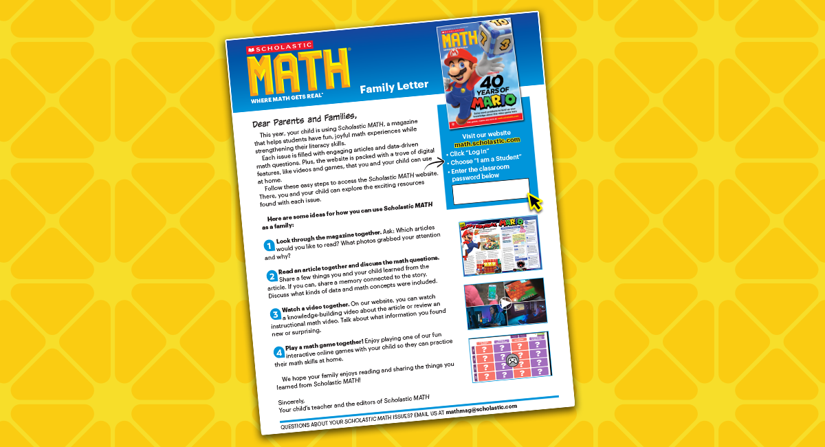 We realize how vital the school-to-home connection is, and our goal is to make building that connection easier for you, so we’ve created a letter you can share with your students' families. The letter introduces parents to Scholastic MATH, and provides simple tips for sharing the joy of reading and math learning with their child.